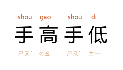 注音ㄕㄡˇ ㄍㄠ ㄕㄡˇ ㄉ一