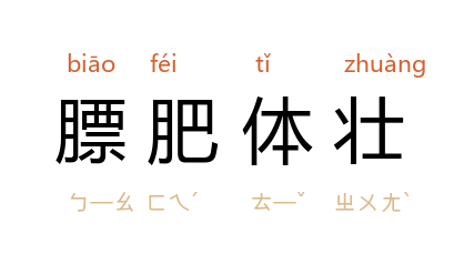 一身肥膘,肥中之肥,体态丰满,肚大腰宽,膘肥体壮,肠肥脑满,体态肥硕,珠圆玉润……