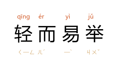轻:轻松;举:向上托。很轻松很容易地举起来。形容做事情毫不费力。