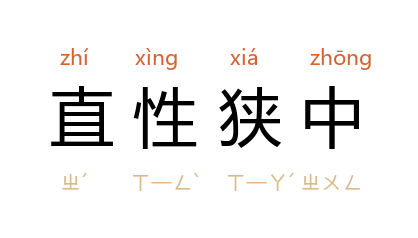 直性:性格直爽;狭中:心中狭隘。直性子,小心眼,搁不住事。指没有宽容人的度量。
