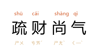 疏:分;气:义气。散财给人,崇尚义气。指为人慷慨重义。