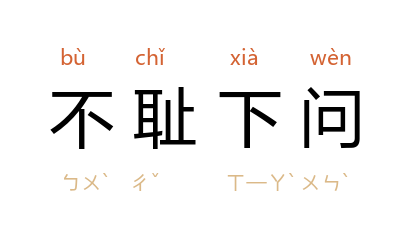 不耻:不以为耻辱;下问:降低身份请教别人。不以向比自己学识差或地位低的人去请教为可耻。形容虚心求教。