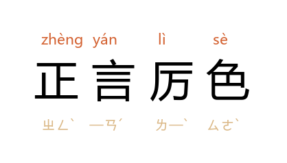 正:严正;厉:严厉;色:脸色。话语严正;态度严厉。