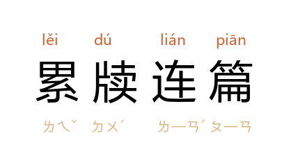 例子明·王玉峰《焚香记·看榜》:“累牍连篇,功名岂偶然。”