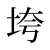 (1) (形声。从土,夸声。本义:倒塌,崩溃瓦解)