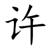 《唐韻》《正韻》虛呂切《集韻》《韻會》喜語切,𠀤虛上聲。《說文》聽也。《廣雅》與也。《玉篇》從也。《廣韻》可也。《增韻》約與之也。《書·金滕》爾之許我,我其以璧與珪歸俟爾命。爾不許我,我乃屛璧與珪。《史記·高祖本紀》呂媼怒。呂公曰:始常欲奇此女與貴人,何自妄許與劉季。