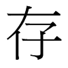 〔古文〕𠩯《唐韻》《集韻》《韻會》《正韻》𠀤徂尊切,音蹲。《爾雅·釋詁》存,在也,察也。《疏》書舜典,在璿璣玉衡,以齊七政。存卽在也。《易·繫辭》成性存存。《孟子》操則存,舍則亡。《禮·祭義》致愛則存。《註》孝子致極愛親之心,則若親之存也。