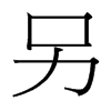 (1) 单,独 。如:另户人(一家独立而无其他宗族亲属的户口);另约(条约的一种。对正约而言,为附件);另巍巍(独立高耸的样子;孤单的样子)