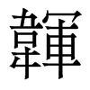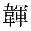 又《廣韻》虛願切《集韻》呼願切,𠀤音楥。義同。《考工記·釋文》韗又况萬反。《集韻》或作𩏅𩏆𩋢𩍹煇。《五音集韻》亦作䩵。