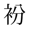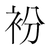 《唐韻》撫文切《韻會》敷文切,𠀤音芬。《類篇》衣大謂之衯。《說文》長衣貌。《司馬相如·子虛賦》衯衯裶裶。