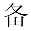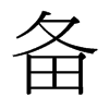 (11) 守备 。如:备伍;备守(守备之器用);备边;备卫