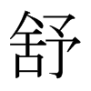 (舒)伸也。經傳或假荼。或假豫。从予。物予人得伸其意。舍聲。此依鍇本。今鍇本作從舍予聲者、淺人不知舍之古音而改之也。傷魚切。五部。一曰舒緩也。此與糸部紓音義皆同。