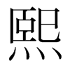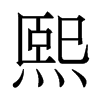 又人名。《左傳·襄八年》鄭公子熙。◎按釋文熙,許其反,徐音怡,二音俱可讀。《六書故》別作𤇴。〇按字彙,《正字通》,熙字音義俱詳十畫熈註。考說文玉篇廣韻,諸書俱作熙,不作熈,則熈當爲俗字。今特將音義備載於此。