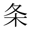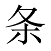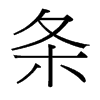 (4) 如:条扇(裱糊后挂起来的画轴);条印;条田;条盆;条纹;条幅