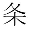 (3) 如:条枚(枝干);条枝(树枝);条柯(枝条);条修叶贯(枝长叶连。比喻有条理、有系统);条叶(枝叶。比喻分支;支派);条蔓(枝蔓);条干(枝干)