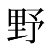〔古文〕埜𡐨《唐韻》羊者切《集韻》《韻會》《正韻》以者切,𠀤音也。《說文》郊外也。《易·同人》同人于野,亨。《疏》野,是廣遠之處。《詩·魯頌》駉駉牡馬,在坰之野。《傳》邑外曰郊,郊外曰野。
