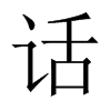 (3) 又如:话言(话语);话差(言语纠葛;争吵);话白儿(闲话);话布口袋(比喻一肚子的话)