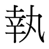 (執)捕辠人也。辠各本作罪。今依廣韵。手部曰。捕者、取也。引申之爲凡持守之偁。从丮㚔。會意。㚔亦聲。之入切。七部。今隷作執。