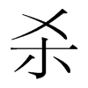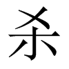 (殺)戮也。戈部曰。戮、殺也。从殳。杀聲。鉉等曰。說文無杀字。相傳音察。按張參曰。杀、古殺字。張說似近是。此如本作术、或加禾爲秫。所八切。十五部。凡殺之屬皆从殺。