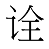 (4) 通“铨”。权衡;考虑;比较 。如:诠度(权衡度量);诠较(权衡比较);诠订(评判考订);诠评(评议);诠笔(评判文章的优劣);诠量(评判衡量);诠藻(品评;衡量)