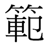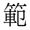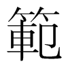 《廣韻》防鋄切《集韻》《韻會》父鋄切《正韻》房啖切,𠀤音犯。《廣韻》法也,式也,模也。《易·繫辭》範圍,天地之化而不過。《疏》範謂模範。《書·洪範疏》武王克殷,訪道于箕子,爲陳天地之大法,敘述其事,乃作《洪範》。《爾雅·釋詁》範,常也。《疏》範者,模法之常也。