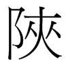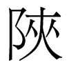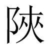 〔古文〕𩂘《唐韻》侯夾切《集韻》《韻會》轄夾切《正韻》胡夾切,𠀤音洽。《說文》隘也。《註》徐鉉曰:今俗从山作峽,非是。《玉篇》不廣也。亦作狹。《爾雅·釋宮》陜而修曲曰樓。《前漢·郊祀志》行溪谷中,阸陜且百里。《司馬相如·封禪書》迹陜遜原,迥闊詠沫。《上林賦》赴隘陜之口。