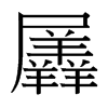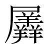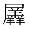《廣韻》《韻會》初鴈切《集韻》初莧切,𠀤音鏟。《說文》羊相廁也。从羴,在屋下。尸,屋也。一曰相出前也。《顏氏家訓》典籍錯亂,皆由後人所羼。