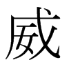 〔古文〕𤰴𤱫《唐韻》《集韻》《韻會》𠀤於非切,音蝛。尊嚴也。《易·大有》威如之吉。《書·洪範》惟辟作威。《周禮·天官》𠛬賞以馭其威。《吳語》夫固知君王之蓋威以好勝也。