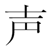《字彙》同𡔝。《正字通》俗聲字。(聲)〔古文〕殸《唐韻》《集韻》《韻會》書盈切《正韻》書征切,𠀤聖平聲。《說文》音也。《書·舜典》詩言志,歌永言,聲依永,律和聲。《傳》聲謂五聲,宮商角徵羽也。《禮·月令》仲夏之月,止聲色。《註》聲謂樂也。