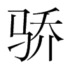 《唐韻》舉喬切《集韻》《韻會》居妖切,𠀤音嬌。《說文》馬高六尺爲驕。《玉篇》壯貌。