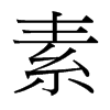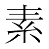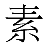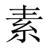 《廣韻》桑故切《集韻》《韻會》《正韻》蘇故切,𠀤音訴。《說文》作𦃃,白緻繒也。从糸𠂹,取其澤也。《九經字㨾》隷省作素。《小爾雅》縞之麤者曰素。《釋名》素,朴素也。已織則供用,不復加巧飾也。《急就篇註》素謂緝之精白者。《禮·雜記》純以素。《註》素,生帛也。