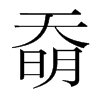 《廣韻》《集韻》𠀤烏猛切,音䁝。《六書略》明也。一曰六合淸明也。
