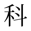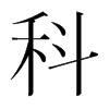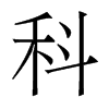 (科)程也。廣韵曰。程也。條也。本也。品也。又科、𣃔也。按實一義之引伸耳。論語曰。爲力不同科。孟子曰。盈科而後進。趙岐曰。科、坎也。按盈科爲盈等也。从禾斗。依韵會所據小徐本。苦禾切。十七部。斗者、量也。說从斗之意。