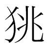《廣韻》治小切《集韻》直紹切,𠀤音兆。《廣韻》犬有力也。《爾雅·釋畜》絕有力,狣。《疏》犬壯大絕有力者名狣。