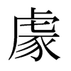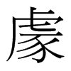 《唐韻》强魚切《集韻》求於切,𠀤音渠。《說文》𩰚相丮不解也。从豕虍會意。豕虍之𩰚不相捨。司馬相如說,豦,封豕之屬。一曰虎兩足舉。