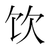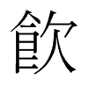 (1) (会意。甲骨文字形。右边是人形,左上边是人伸着舌头,左下边是酒坛(酉)。象人伸舌头向酒坛饮酒。小篆演变为“飲”,隶书作“饮”。本义:喝)