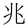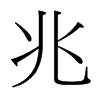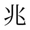 (10) 古代设于四郊的祭坛 。如:兆日(设置祀日神坛);兆位(四郊祭坛的处所);兆祀(设坛祭祀);兆守(监守祭坛的职司)
