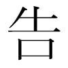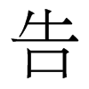 (1) (会意。甲骨文字形,上面的“牛”,牛触人,角着横木,所以告人也。从口,从牛。本义:报告,上报)