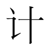 《唐韻》古詣切《集韻》《韻會》《正韻》吉詣切,𠀤音繼。《說文》會也,算也。从言从十。徐曰:十者,物成數。會意。《左傳·昭三十二年》士彌牟營成周,計丈數。《禮·內則》十年,出就外傅,居宿于外,學書計。《註》書謂六書,計謂九數。《周禮·天官》小宰以六計弊羣吏之治。《註》弊,斷也。《疏》六計,謂善、能、敬、正、法、辨,皆以廉爲本,計其功過多少而聽斷之也。