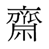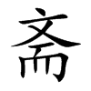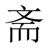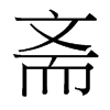 《篇海》同齋。(齋)《廣韻》側皆切《集韻》《韻會》《正韻》莊皆切,𠀤債平聲。《正韻》潔也,莊也,恭也。《廣雅》齋,敬也。《禮·祭統》齋之爲言齊也。《易·繫辭》聖人以此齋戒。《註》洗心曰齋。