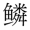 《廣韻》力珍切《集韻》《韻會》《正韻》離珍切,𠀤音鄰。《說文》魚甲也。《玉篇》魚龍之鱗也。《周禮·地官·大司徒》其動物宜鱗物。《註》鱗,龍之屬。《禮·月令》其蟲(鱗。《註》)龍蛇之屬。《淮南子·地形訓》凡鱗者,生於庶魚。