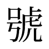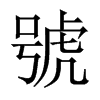 (號)嘑也。嘑各本作呼。今正。呼、外息也。與嘑義別。口部曰。嘑、號也。此二字互訓之證也。釋言曰。號、謼也。魏風傳曰。號、呼也。以說文律之。謼呼皆假借字。號嘑者、如今云高叫也。引伸爲名號、爲號令。从号。从虎。嗁号聲高。故从号。虎哮聲厲。故从虎。号亦聲。乎刀切。亦去聲。二部。