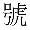 又叶胡溝切。《皮日休·悼賈文》臨汨羅之漾漾兮,想懷沙之幽憂。森樛羅以蓊鬰兮,時逬狖以相號。《集韻》本作号,又作唬。毛氏曰:从口从丂,丂音考,俗从号,非。