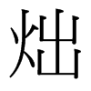 炪【巳集中】【火部】 康熙筆画:9画,部外筆画:5画