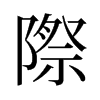 《唐韻》《集韻》《韻會》𠀤子例切,音祭。《說文》壁會也。《玉篇》合也。《廣韻》會也。《易·泰卦》天地際也。《坎卦》剛柔際也。《前漢·翼奉傳》詩有五際。《註》詩內傳曰:五際,卯酉午戌亥也。隂陽終始際會之歲,於此則有攺變之政也。