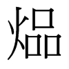 煰【補遺·巳集】【火部】 康熙筆画:13画,部外筆画:9画