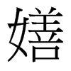 嫸【丑集下】【女部】 康熙筆画:15画,部外筆画:12画
