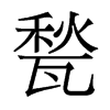 〔古文〕㼙《唐韻》《集韻》《韻會》《正韻》𠀤側救切,音縐。《說文》井甓也。《易·井卦》六四井甃旡咎。《註》結砌也。馬云:爲瓦裏下達上。《疏》甃,亦治也。以塼壘井,修井之壞,謂之甃。《莊子·秋水篇》缺甃之崖。