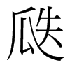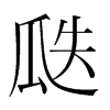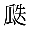 《唐韻》《集韻》《韻會》𠀤徒結切,音絰。《說文》㼎也。《詩·大雅》緜緜瓜瓞。《傳》瓞瓝也。《疏》瓜之族類有二種,大者瓜,小者瓞。瓜蔓近本之瓜,必小于先歲之大瓜,以其小如瓞,故謂之瓞。瓞是瓝之別名。《潘岳·在懷縣作詩》瓜瓞蔓長苞。《集韻》或作𤫰。亦作𤫼𤬎。