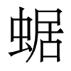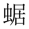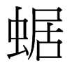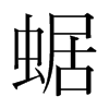 《唐韻》九魚切《集韻》斤於切,𠀤音居。蜛蠩,蟲名。《郭璞·江賦》蜛蠩森衰以垂翹。《註》《南越志》曰:蜛蠩,一頭,尾有數條,長二三尺左右,有脚狀如蠶,可食。或作䱟。
